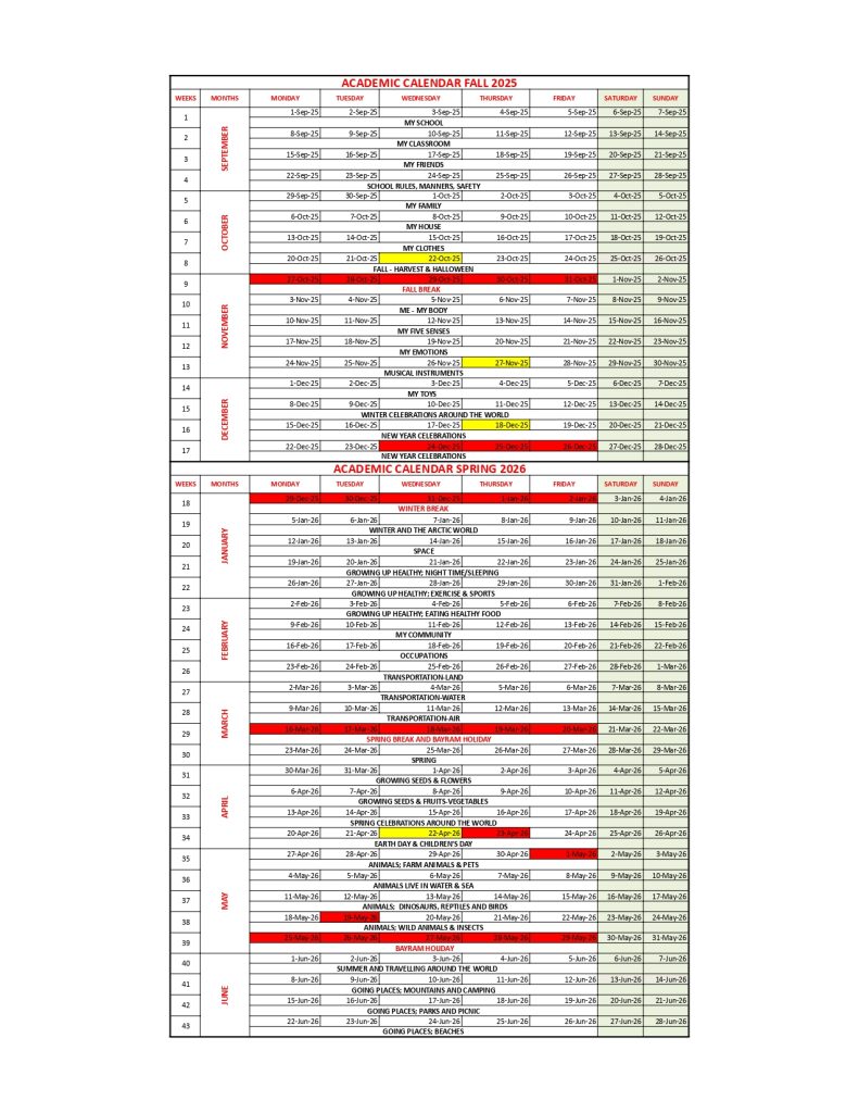 - School is closed for maximum 20 school days (except national and religious holidays) during the academic year.